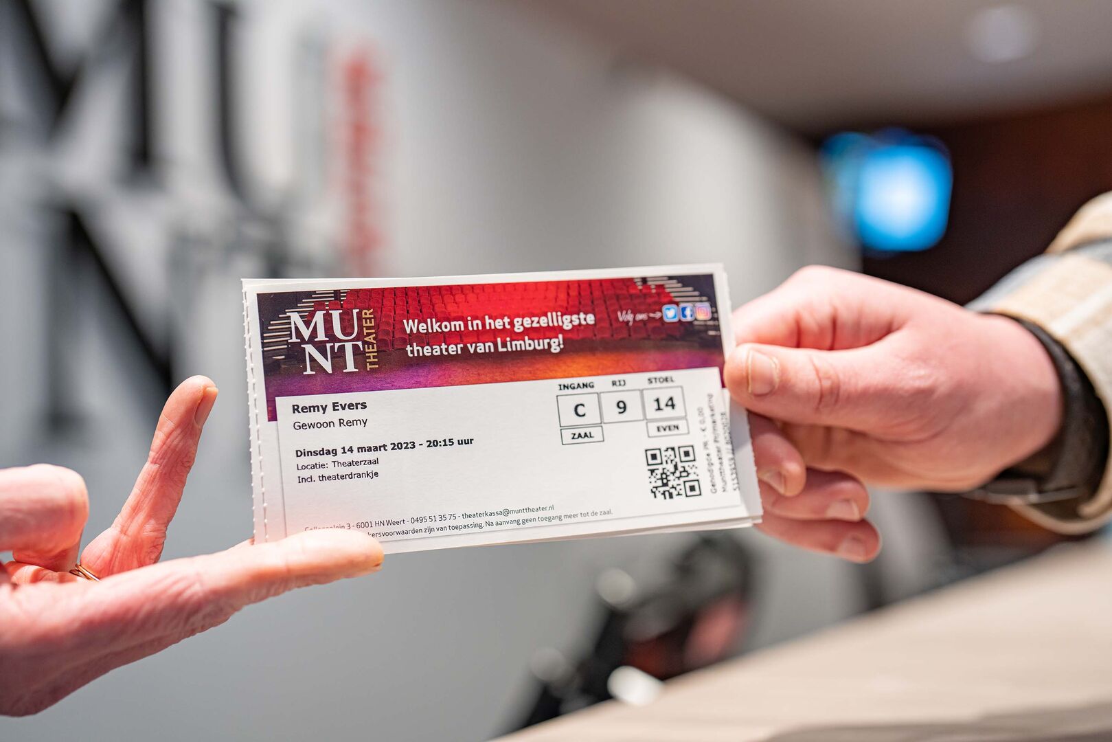 Wat leuk dat je van plan bent om een voorstelling bij Munttheater Weert te bezoeken! Bij ons kun je op verschillende manieren tickets bestellen. Zo kun je natuurlijk theatertickets kopen via onze website. Vind je het fijner als een medewerker je helpt bij het reserveren van theatertickets? Dat kan! Het is namelijk ook mogelijk om telefonisch tickets te bestellen. Deze optie is beschikbaar van dinsdag t/m vrijdag tussen 11:00 tot 17:00 uur door te bellen naar +31 (0)495 513575. Je kunt ook theatertickets kopen bij onze medewerkers aan de kassa. De theaterkassa is geopend op donderdag en vrijdag van 13:00 tot 16:00 uur en één uur voor het begin van elke voorstelling.